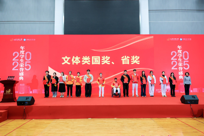 岁华新启,荣光绽放;榜样为炬,逐光而行。1月9日下午,江苏开放大学(江苏城市职业学院)2025年度学生荣誉盛典于应天校区体艺馆隆重举行。学校党委书记丁荣余,党委副书记、校长张迎春,党委常委、副校长刘贵友,副校长张晓,党委常委、副校长耿焕同、韩承辉、杭祝洪、杨羽出席盛典。江苏省残疾人文化体育指导中心副主任邢燕,学校产业教授李仁民、姚姝,优秀校友荣静等嘉宾受邀莅临,各职能部门负责人、各学院党政负责人及师生代表齐聚一堂,共同见证榜样荣光,同心凝聚逐光力量。荣誉盛典由杭祝洪主持。